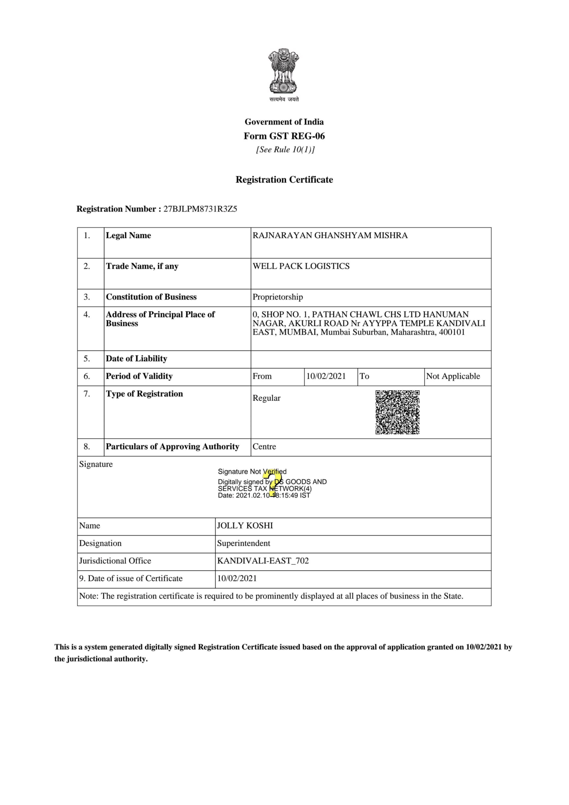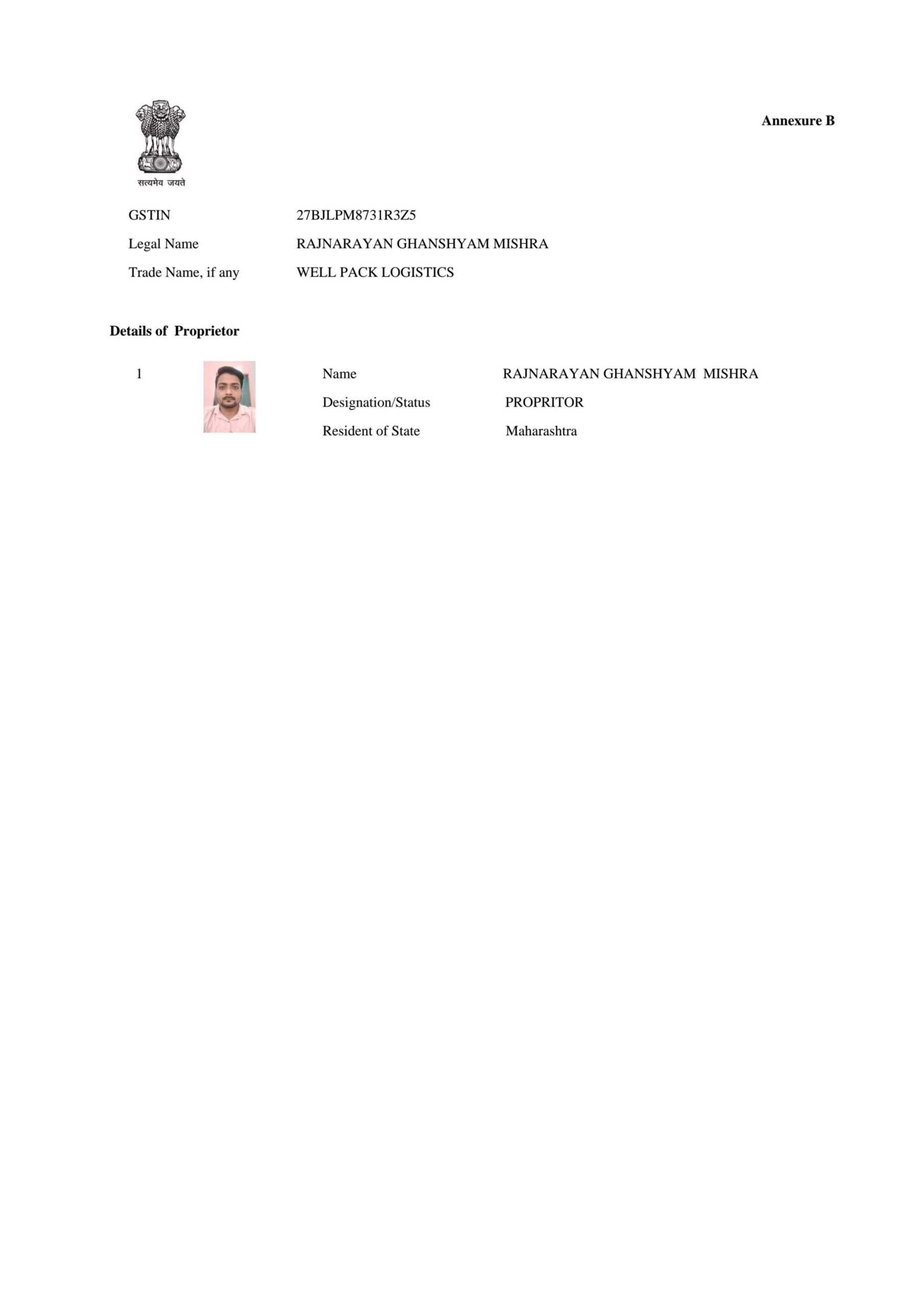 GSTIN – 27BJLPM8731R3Z5