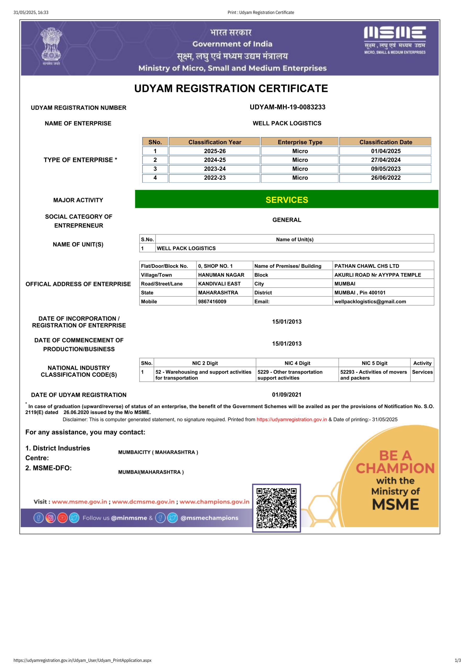 GSTIN – UDYAM-MH-19-0083233